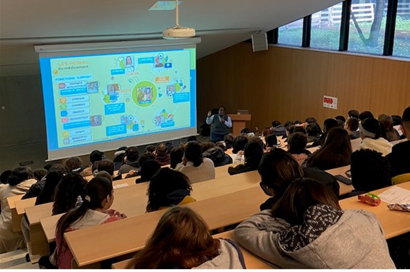 Cette rencontre a été très appréciée par les élèves, qui ont manifesté un vif intérêt pour les parcours scientifiques. La présentation s’est déroulée dans un grand amphithéâtre, créant une atmosphère propice à l’échange et à la réflexion.